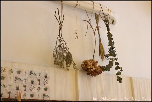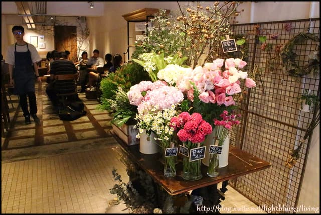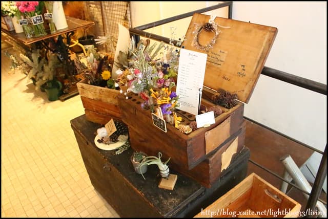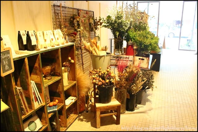 吧台對面放了許多新鮮花卉、乾燥花跟一些展售的小商品