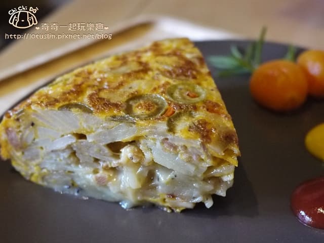 上層的橄欖香,類似烘蛋或鹹的千層派,