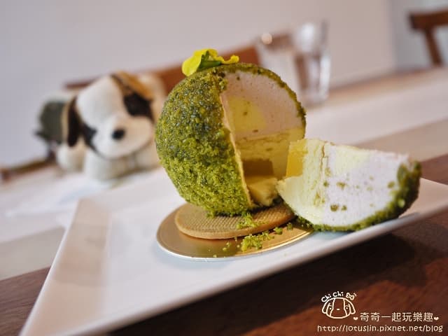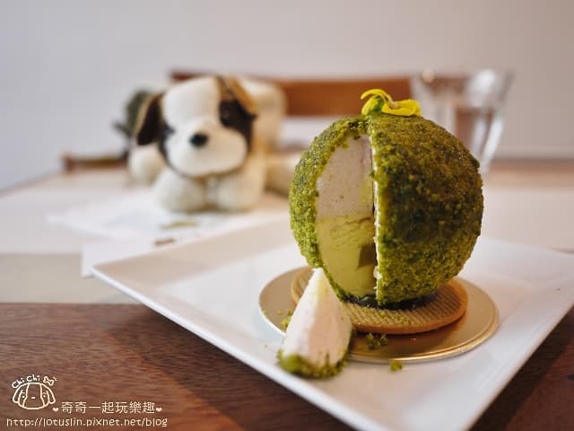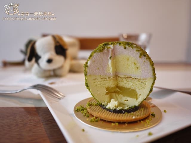 2F陽台吃起來口感非常細緻,外層的開心果碎粒是濕潤的,