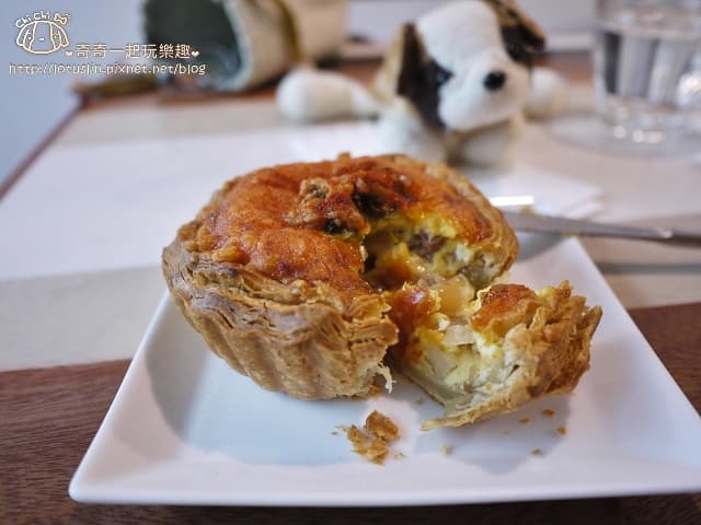 鹹派切開裡頭蔬菜稍有出水,乳酪起司好香,