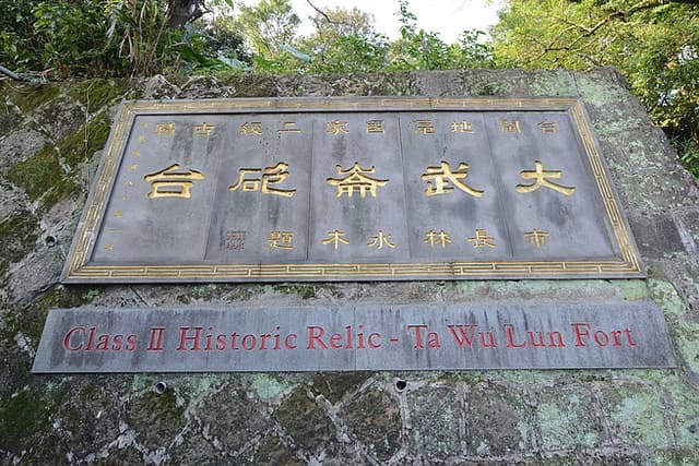 從情人湖公園下了車,沿著山路向上散步,約十五分鐘的路程就會看到刻有大武崙砲臺,國家二級古蹟的威武巨大石板出現在路邊。
