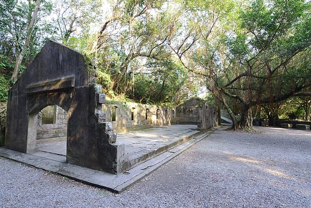 走過寬廣道路來到營房,據傳這是被日軍重建整理過的遺跡,營房雖然已有殘破之處,不過仍然保有著基本的外型。
