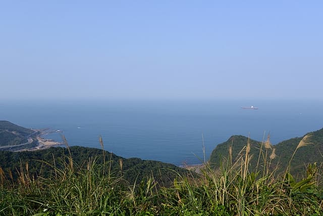 從營房旁的道路來到後方的草坪,可以遠眺野柳與基隆嶼的空地視野相當良好。