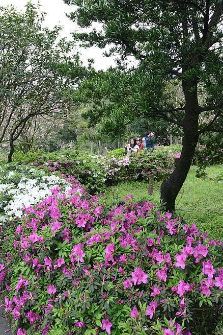 順著街道路來到天壇後方的小廟,除了盛開的櫻花外,白色及桃紅色的杜鵑花也同樣大朵大朵的綻放著,一片花海讓人深刻的感受到春天的腳步即將到來。