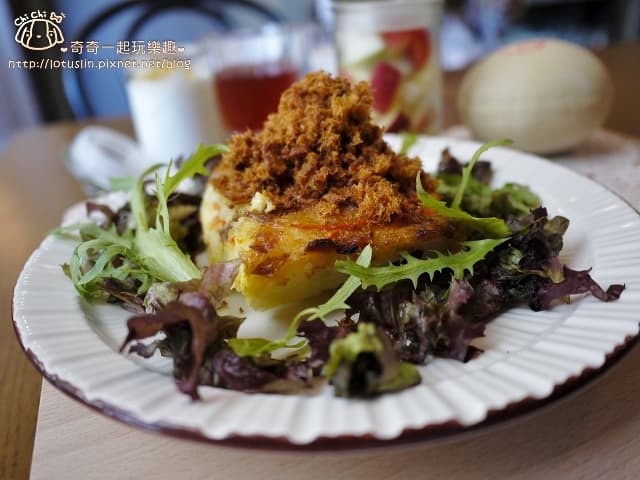 我的烘蛋表現不賴,熱騰騰的烘蛋,裏頭的馬鈴薯片綿,