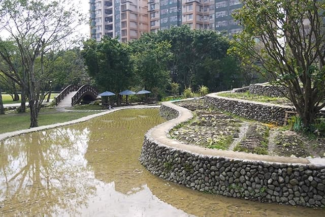 原為交通博物館的客家文化主題公園,經過整理後,目前公園內小橋流水,還有梯田供民眾認領,體驗農耕之樂趣,中午時,附近的上班族,會帶著他們的便當,在這裡享受片刻的午餐時光。