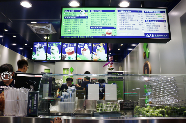 正困惑說普通的檸檬汁怎麼會有這麼多人買,研究了一下原來這間龜大方賣的不是普通的檸檬汁,而是以整顆檸檬連皮一起製做去打成檸檬汁,再加上各種茶飲或果汁等等調製,一杯至少50起跳確實不便宜。