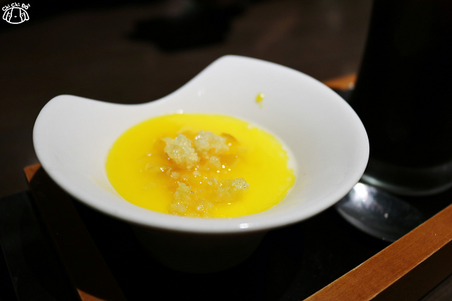 我本來就不愛單吃生菜,品田牧場的沙拉看起來超虛,只有一條蝦,還有一顆小番茄,上頭淋的應該是優格醬,酸甜酸甜的。