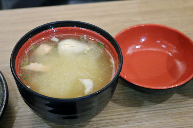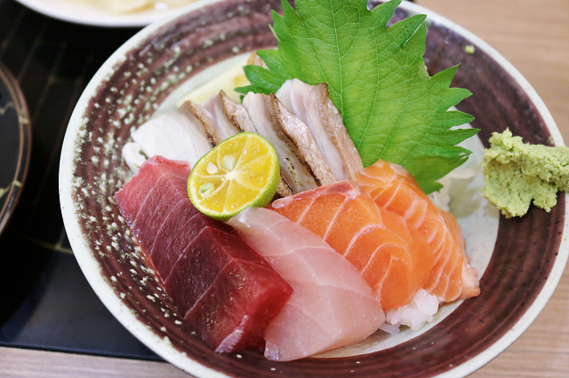 一般在外面可能一碗散壽司丼就已經是$250的價錢,但洺町和風美食的定食還包含了味噌魚湯和一整隻烤秋刀魚,這樣的價位在台北市區真的算是蠻平價的,散壽司丼用的是我喜歡的醋飯,生魚片偏厚,特別的是還有附了一小片豆皮,以及一塊玉子燒。
