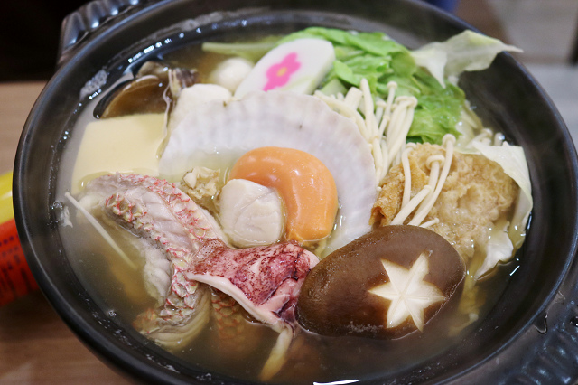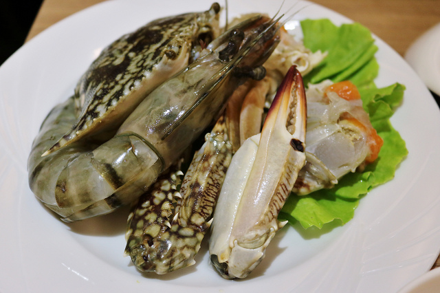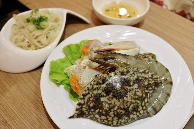 火鍋很豐盛,有白蝦、蛤、扇貝、軟絲、魚肉、火鍋料,湯頭很清,煮了海鮮之後變得鮮甜。