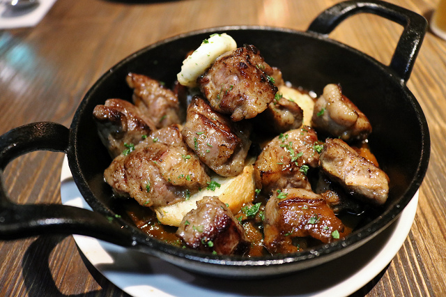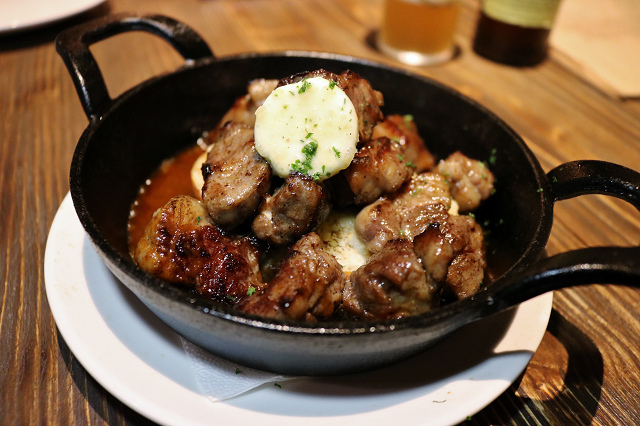 果然就是在麵包山丘上翻滾的牛肋,味道極好,蒜香奶油化開後更香, 牛肋帶筋與油花,越嚼越香我愛死了!!麵包底下還有吸飽醬汁的洋蔥,大推!!