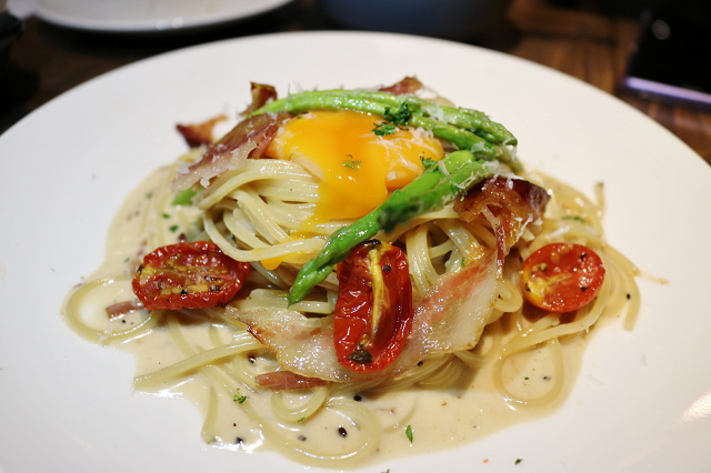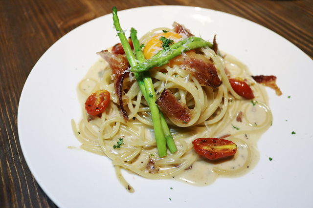 主廚的奶油培根蛋黃麵 $280