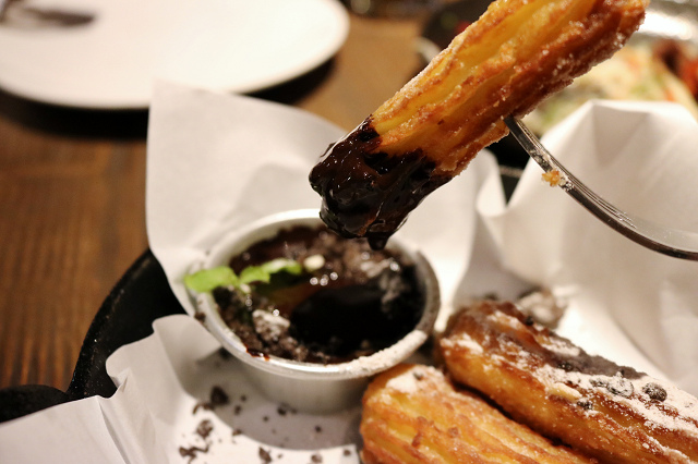 我非常喜歡吃吉拿棒,但太多店家都很愛加討厭的肉桂粉,waiting bistro的吉拿棒沒有加肉桂粉!沒有加肉桂粉!沒有加肉桂粉!!(歡呼)快撐死了當機立斷把吃不完的燉飯打包,把空間留給我最愛的吉拿棒~吉拿棒邊邊酥香,裡邊軟,熱呼呼好好吃,搭配的苦甜巧克力醬更是讓人幸福爆表,好吃到要哭了我~~~太喜歡 Waiting Bistro 的吉拿棒,推薦必點!!!