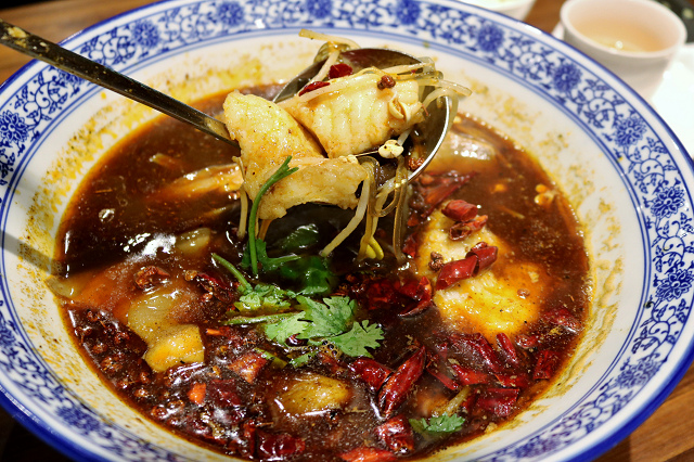 超大一碗上桌氣勢驚人,魚肉嫩還有點QQ口感,魚肉非常好吃只是量不多,四個人我才分食到一塊,其他有些是偽裝成魚肉的菇類,滿滿的冬粉也好Q,還有大量的木耳和豆芽菜,花椒的麻很帶勁,越吃越過癮!