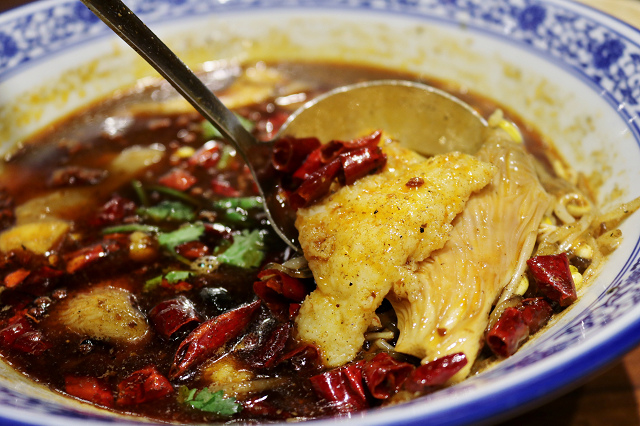 上海炒飯看起來色香味俱全,顏色很深但其實沒有想像中的重口味,口感偏濕了一些些但仍粒粒分明,雞肉很嫩,不過配重慶水煮魚又確實口味重了些,可以點其他的炒飯。