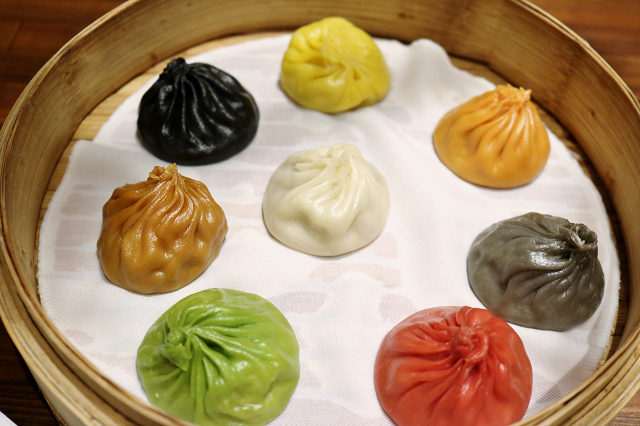 雖然不是所有口味都那麼好吃,也可以單獨一種口味一籠這樣點,但是一次點齊八種不同顏色實在賞心悅目!