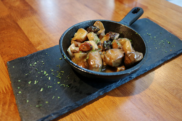 蘑菇帶蒜香但仍保有原味,超級大顆而且飽滿會爆汁。