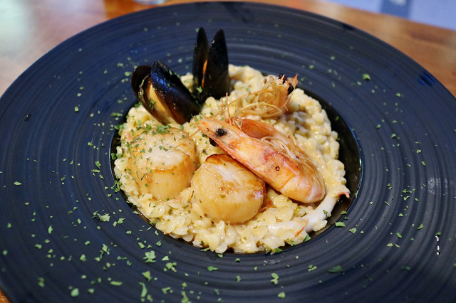 我一向喜歡燉飯或義大利麵這類義式餐點,惟獨對於"米麵"印象不佳,(以前吃到的都不好吃導致)所以一聽到店員告知所有燉飯使用的都是米麵時非常猶豫,想不到我對 Mastro Cafe 的米麵表現滿意的不得了啊!!法式白醬濃郁不膩口,帶蒜味以及紅蔥頭的香氣,吸飽了醬汁的米麵味道很好,口感有彈性越咬越香,真的非常好吃!!七分熟的干貝,海鮮料也給的不少,每次吃燉飯總是會不小心先把上面的海鮮吃完,結果這回米麵好吃到我先吃光光,是我吃過最喜歡也最推薦的米麵了!!
