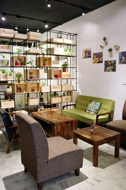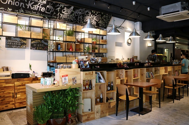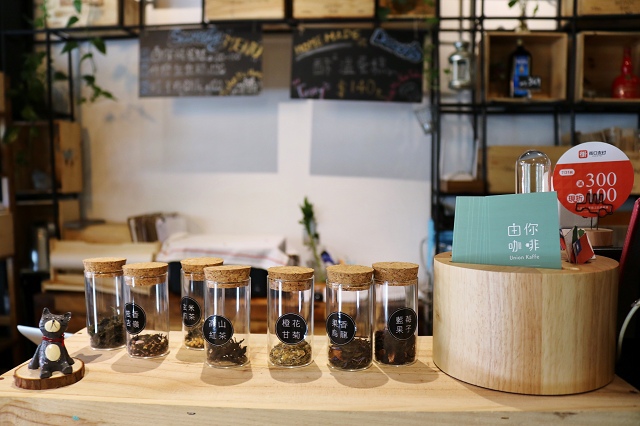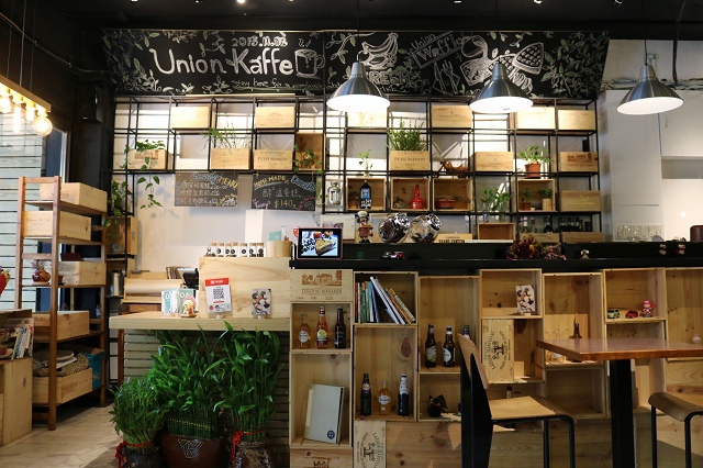 由你咖啡Union Kaffe 的空間環境好舒適好舒適,木質色系配上綠色植物,書香及咖啡香,濃濃文藝氣息,趕在一開店當第一組客人,店裡位置任我挑XD