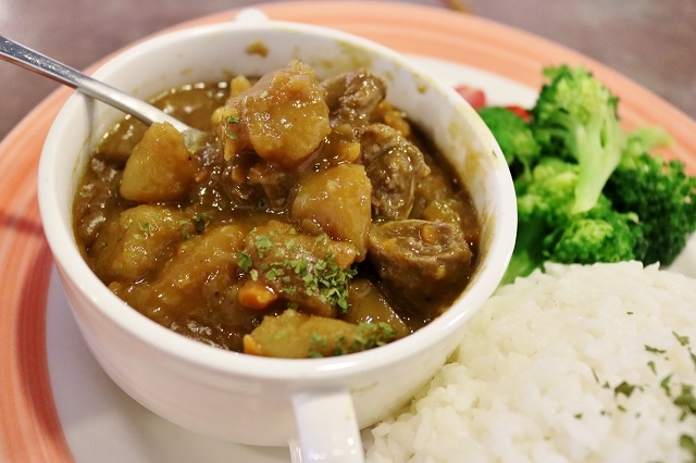 雖然是簡單的咖哩飯,但可一點也不馬虎,咖哩醬香濃,香料讓味道層次更豐富,牛腩燉煮的好好吃,一吃就好開胃XD簡單的配了水煮綠花椰菜和小蕃茄,小可惜是白飯煮的過軟了些~