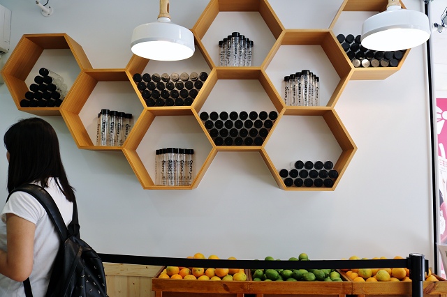 果汁已經裝好在瓶子裡了,所以買的時候超迅速都沒不用等。
