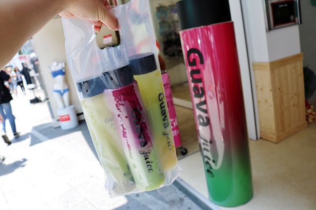 Guava juice芭樂芭的果汁一瓶的價格不貴,喝完瓶子還可以留做其他用途,繽紛漸層顏色好看又好喝,真的非常喜歡!!