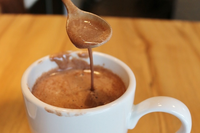 打發的濃稠感,比較偏濃郁的義式可可, 超級無敵燙口,想不開的人可以大口喝下(誤),可惜太甜了些,我喜歡偏苦微甜的可可。