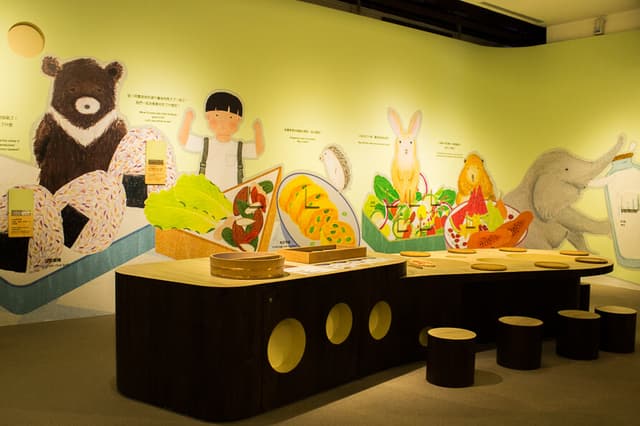 接下來就是小朋友的天地了!在二樓的展覽空間是專門設計給小朋友玩的「阿農奇幻冒險之旅-新農有機樂活玩特展」,讓小朋友在這裡認識農作物,也有互動遊戲。
