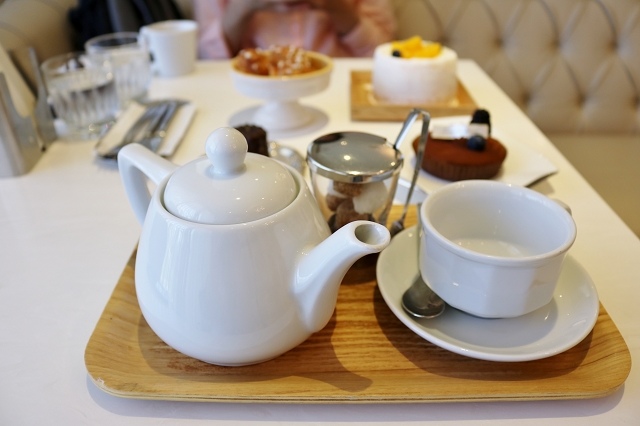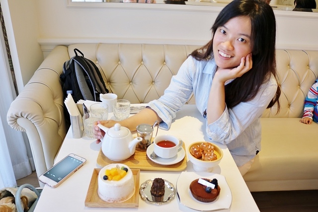 甜點加購飲品有八折優惠,雖然低消無限定飲料,但怕甜點吃多會膩,還是選了一款熱茶來配,貴婦下午茶當然要優雅的來杯好茶,與美麗的法式甜點相搭XD我們很喜歡這款加勒比海,南非細緻的灌木茶為基底,佐可可豆與綠杏仁,不含咖啡因,回沖個三次都足夠。