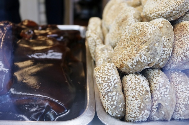 姐姐總是很照顧隻身在台北工作的我,厚臉皮的跟上聚餐,才讓我有機會一嚐北平都一處的美味燒餅,還有那一天限量供應只有三份,一份卻要八百元的蔥油餅,大開眼界!