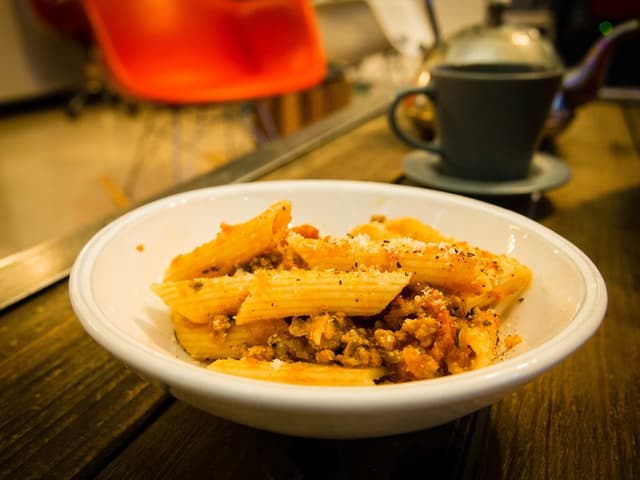 擺盤就無需為了美觀,講究留白的藝術,菜色只占瓷盤的一角,好比自家宴客,南義水煮魚整鍋上桌,給你最真材實料的好吃,大家輕鬆愉快、不假掰,彼此分享裝盤,以美食佐味的溫馨聚會。幾乎不摻調味料,讓新榨橄欖油帶出食物的原味讓欣松與Mei創業初期就沒有想開店面,純粹以私廚的方式經營,招待家人朋友般,精心挑選食材,不用複雜的調味,用心做好每個步驟,一道道好吃的料理即刻上桌,讓這裡的空間有像家一樣的安全感,可以很放心的做自己,不用顧慮外人的眼光,無須裝模作樣的享受美食,給人特別放鬆、開心的饗宴。他們倆人中文名的最後一個字合起來,剛好跟法文的「家」很像,La maison de meisung的店名,就在短短的30分鐘內完美結束─Meisung的家,Meisung的家常味。就像法國最好吃的料理從不在餐廳,而是在農莊、酒莊裡的媽媽菜,料理如果有用心做就有靈魂,不同於爸爸的粗曠豪氣,欣松的料理風味較為細緻。就像美式肉醬的香料、番茄、蒜味較重,但刀叉私廚的肉醬則偏向番茄湯,著重番茄清新的酸香、牛肉的甘醇味,讓料理風味柔和,細心專注每個細節,這就是美味的關鍵。