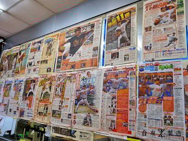老闆應該是陳偉殷的球迷,蒐集了許多簡報。這麼巧!我不看棒球的...