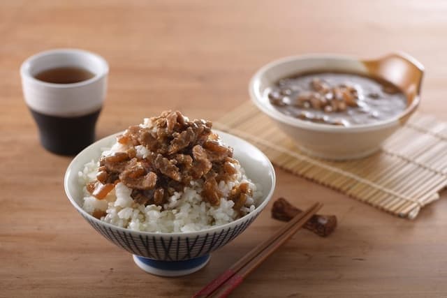 餐酒Tips: 不知道要搭甚麼的時候,就參考侍酒師的精選菜單吧!降低鹽分與油膩感的豬頰肉滷肉飯,可以搭上飽滿、酯味充足的阿爾薩斯灰皮諾白酒;芬香過癮的黑胡椒培根排則是佐上同樣帶著香料氣息的隆河希哈紅酒。無須拘泥中西式菜色,就大口吃肉、大口喝酒吧!