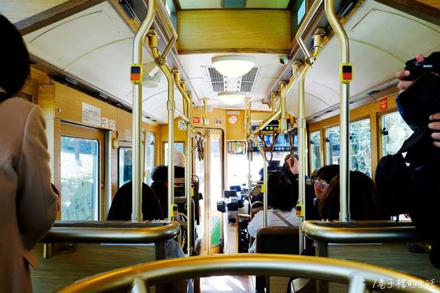 上車是從後門上,車上可站可坐,每一站都會有日文和英文的語音報站名,車上螢幕則會有漢字可以參考,要下車時按柱子上的叮咚,等車停好之後再往前走到司機處付款就好了,付款可以付現金(會找零)、出示一日券或是跟司機買一日券也行。