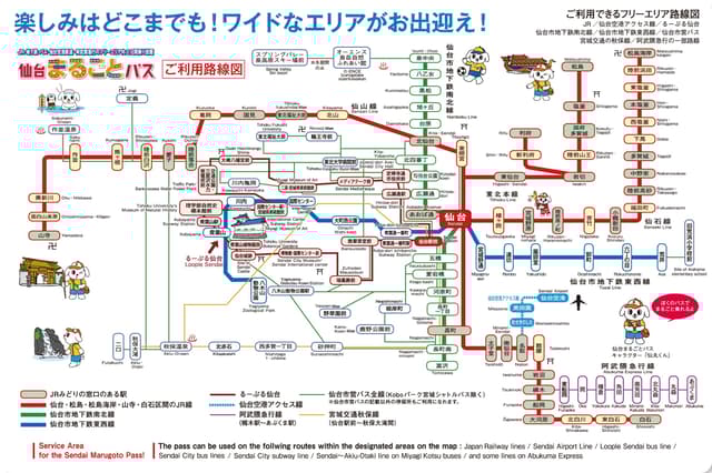 - 仙台觀光巴士 + 仙台地鐵 1 日券:大人 900 日圓、小孩 450 日圓