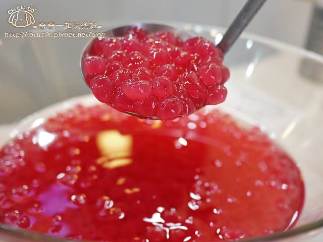 珍珠加入了仙人掌汁液,所以口感上比前兩款焦糖和寒天偏軟一些,