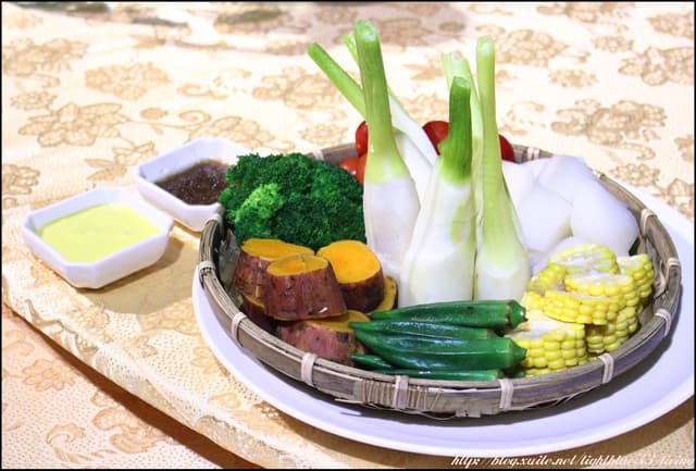全部使用有機蔬菜,我還特別喜歡筊白筍,非常鮮嫩又甘甜,只沾一點和風醬就好好吃