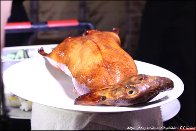 看師父手腳俐落,不一會兒,烤鴨第一吃就完成了