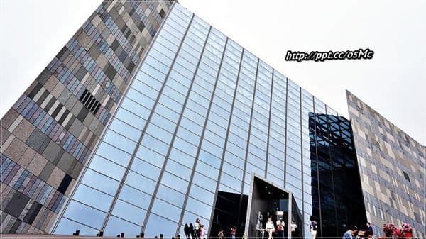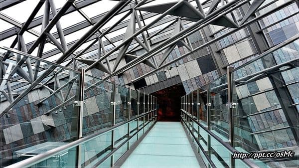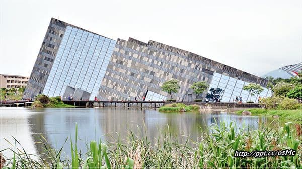 抬頭一看,這建築整個好傾斜,不過也很壯觀。