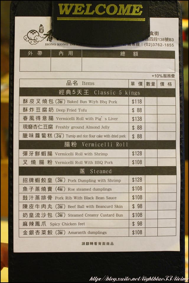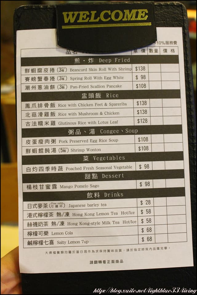 自己畫好單之後就可以交給服務人員,餐好後會送上,所以會加一成服務費。