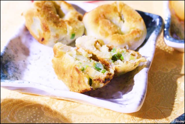 蔥油餅作成圓圈形,是因為裡頭竟然還加了干貝和蝦仁!