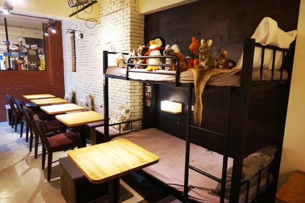 所以之前曾到訪澳洲渡假留的老闆,就直接將上下鋪放在咖啡廳裡 讓大家能更加貼切體驗到背包客生活!