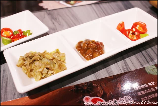 三寶都有各給兩個,吃完原味之後可以試著如建議所說的加酸菜和主廚特製醋漬辣醬,湯頭就會瞬間多了一個層次,也轉換成另一種味道