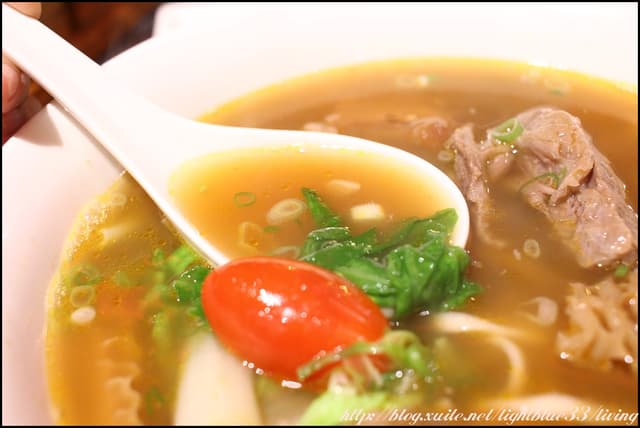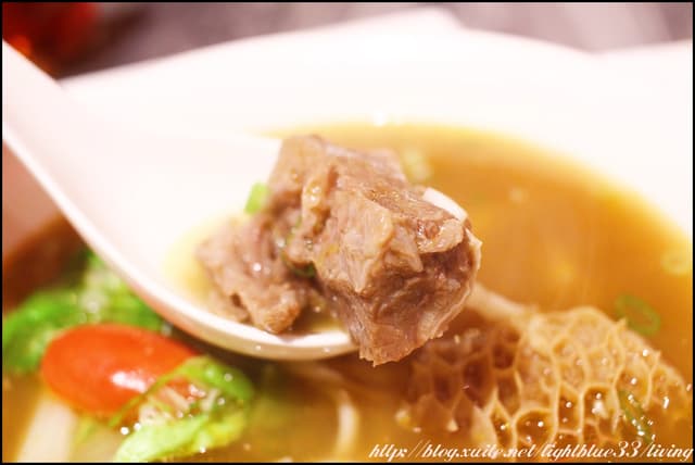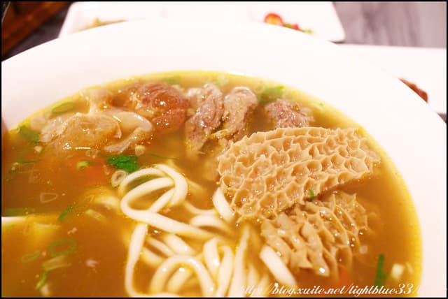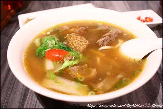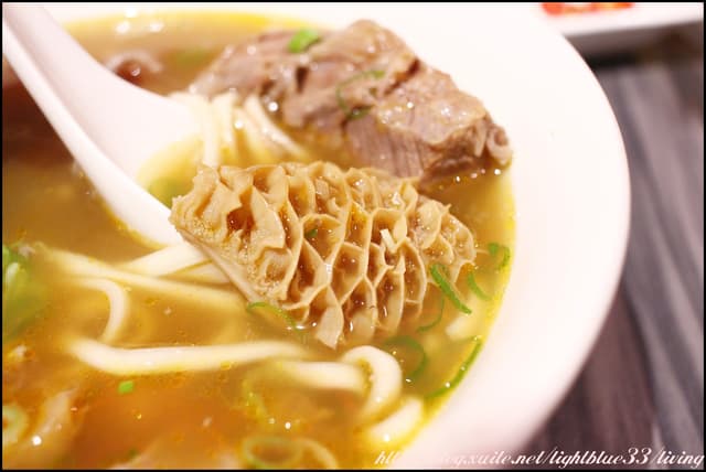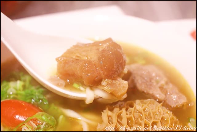 這是紅燒湯底的三寶牛肉麵,有牛腩、牛筋、牛肚