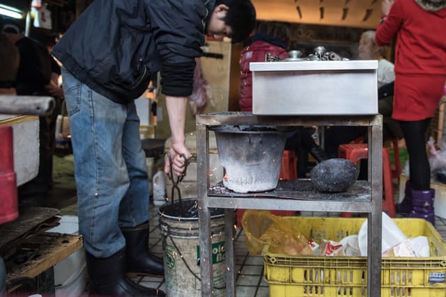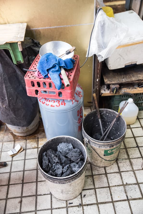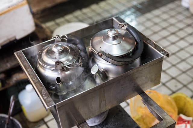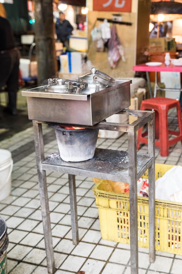 用炭火在下面煮水,加熱上面茶壺內的特調可可牛奶,好傳統的味道呀,很愛。