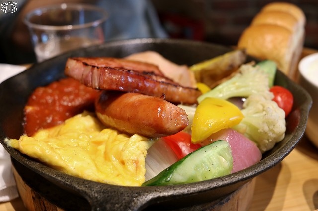 多一點厚煎培根起司蛋鐵板拼盤 附mini吐司 $220