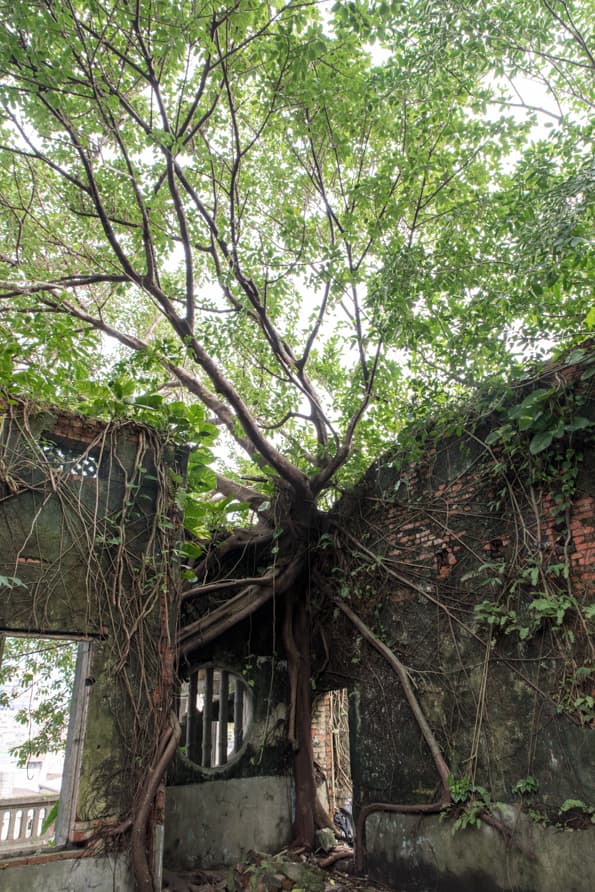 它就在基隆廟口內,最單純的直線距離幾公尺而已,但基隆特殊的建築聚落,讓一般人很難親近,也很容易忘記。所以在1945年後,主人過世,它就被放在那裡了。隨著時光流轉,在荒煙蔓草中獨自頹廢。