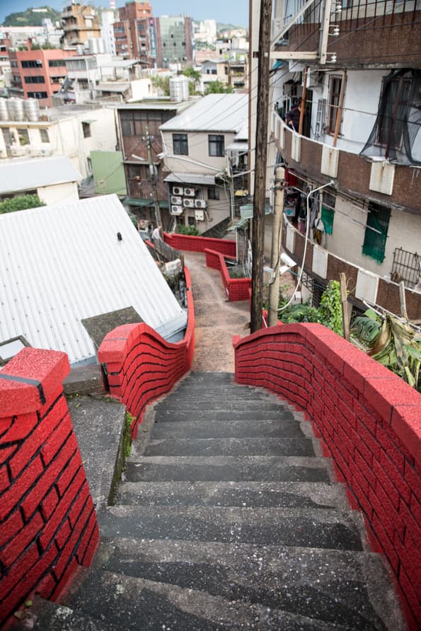 前往許梓桑古厝的爬坡小巷裡,可以感受夾道簇擁的鮮豔紅,而不是歷史紅磚紅。這是為了遊客特別整理出來,但令人惋惜的,仿古不成的假紅磚,反而增生突兀,這就是我們還需努力的:「基隆城市美學」