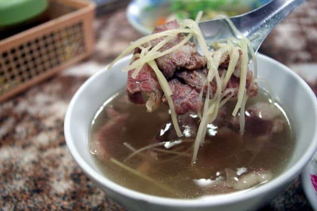 這家牛肉湯,離市區約莫二十分鐘的車程。但不要小看這個距離,已經足以擋掉大部份的觀光客,是在店老店,不用排隊的牛肉湯呀!