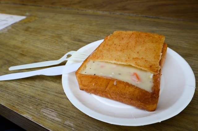每個都想吃,但又沒那麼大的胃,這是來臺南吃美食的困擾。王城棺材板幫你備好原本尺寸的棺材板,還多了小size的讓你吃個口味一下,頗為貼心呀。